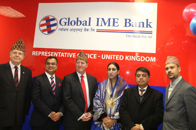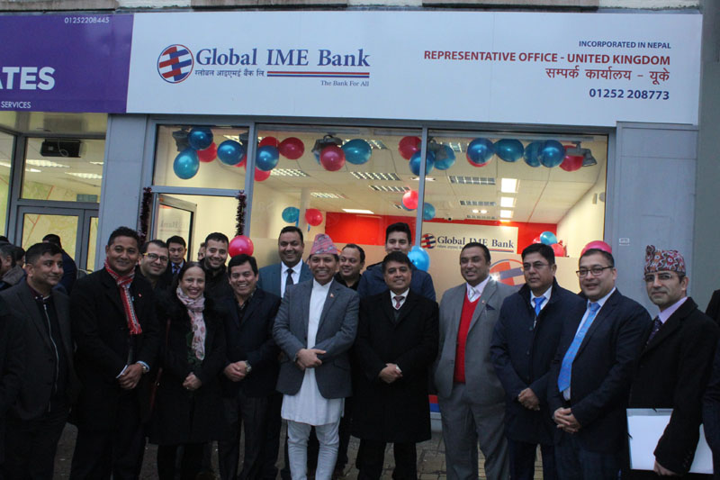 राष्ट्र बैंकका गभर्नर डा चिरन्जिवी नेपाल, उध्योग वाणिज्य महासंघका उपाध्यक्ष तथा ग्लोबल आईएमई बैंकका सीइओ चन्द्र ढकाल र जनक शर्मा पौडेल बेलायतका लागि नेपाली राजदुत डा दुर्गाबहादुर सुवदी, एनआरएन आईसीसी उपाध्यक्ष कुल आचार्य, एनआरएन यूके अध्यक्ष योग फगामी, महासचिव आरके त्रिपाठी, ग्लोबल आइएमई बैंकका बेलायत प्रतिनिधि अमित चालिसे, आइएमईका कमल पौडेल सहित विभिन्न संघ सस्थाका प्रतिनिधिबीच बिधिबत रुपमा आइतबार ग्लोबल आईएमई बैंकको सम्पर्क कार्यालय अल्डरशटमा आयोजित एक भव्य समारोहबीच उद्घाटन भएको हो ।