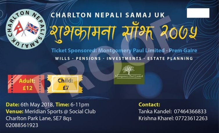 लण्डन । आगामी मे ६ तारिख आइतबार सांझ ६ बजेदेखि ११ बजे सम्म चार्ल्टन नेपाली समाजले एक शुभकामना सांझ कार्यक्रमको आयोजना गर्ने भएको छ ।