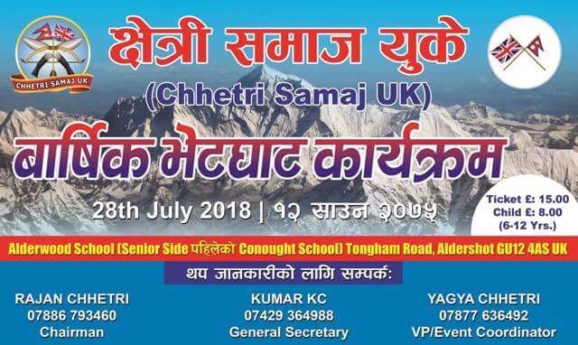 जगन कार्की , लण्डन । क्षेत्री समाज बेलायतले आगामि २८ जुलाईमा वार्षिक समर भेटघाट (गेट टुगेदर) गर्ने भएको छ ।