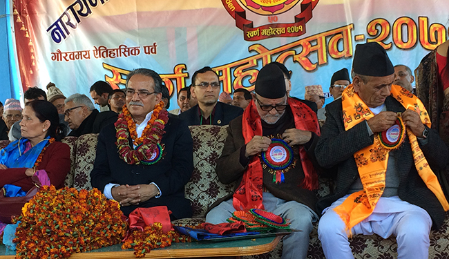 कोइराला र प्रचण्डले पश्चिम चितवनको शिवनगरस्थित नारायणी विद्या मन्दिर उच्च माविको स्वर्ण महोत्सवको संयुक्त रुपमा उद्घाटन गरे । कार्यक्रममा यसै क्षेत्रबाट निर्वाचित प्रधानमन्त्री कोइराला र यसै विद्यालयमा अध्ययन गरेका प्रचण्डले छिट्टै दलहरुबीच सहमति भई संविधान बन्ने बताए ।