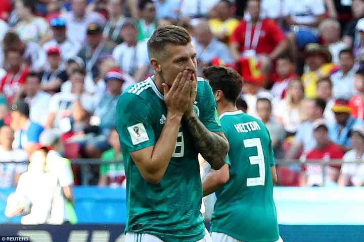 गए राति भएको समूह चरणको अन्तिम खेलमा जर्मनी कोरियासँग २–० गोलले पराजित हुँदै ८० वर्षपछि दोस्रो चरणमा पुग्न सकेन । सन् १९३८ मा स्विट्जरल्याण्डसँग ४–२ले पराजित बन्दै दोस्रो चरणमा प्रवेश गर्न असफल भएको थियो ।