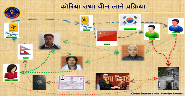 जहाँ विभिन्न प्रलोभन देखाएर नेपाली युवतीहरु विवाहका लागि ल्याएर कोरियन र चिनियाँ दलालसँग समन्वयको काम हुने गरेको छ ।
