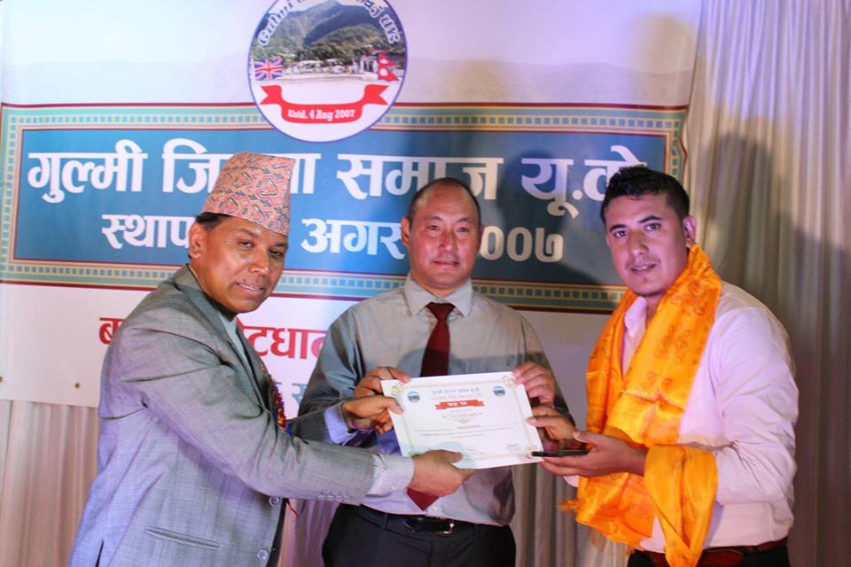 प्रमुख अतिथी समाजका संस्थापक अध्यक्ष ओमप्रसाद थापाले,बेलायतका विभिन्न स्थानमा बसोबास गर्ने गुल्मेलिलाई एकै थलोमा जमघट र नेपाली कला संस्कृति संरक्षण गर्नु समाजको उद्देश्य रहेको जनाउंदै सहभागी सबैमा धन्यवाद व्यक्त गरे ।