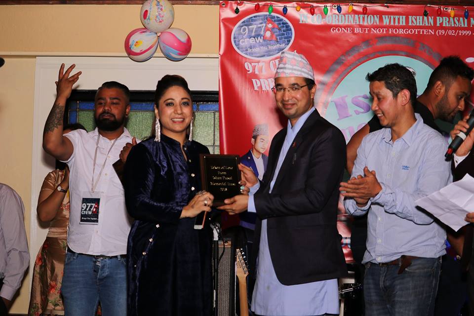 डब्लिन । आयरल्याण्डको डब्लिन सहरमा हालै ९७७ क्रु द्वारा आयोजित ईशान प्रसाई मेमोरिअल साँझ सम्पन्न भएको छ । संगीत प्रेमी स्व इशान प्रसाई एक होनहार युवा जो जीवनका अनगिन्ति सपना लिएर उदाएका थिए । जो एउटा आफैमा सुन्दर कोपिला फक्रन नपाउदै १८ बशन्त पुरा नगर्दै हामी माझ बाट सदाका लागि बिदा भए पनि उनको सम्झनामा सुमुधुर सांगीतिक कार्यक्रम मार्फत उनको सम्झना गरिएको, उक्त कार्यक्रम आफैमा प्रसंसनिय थियो ।