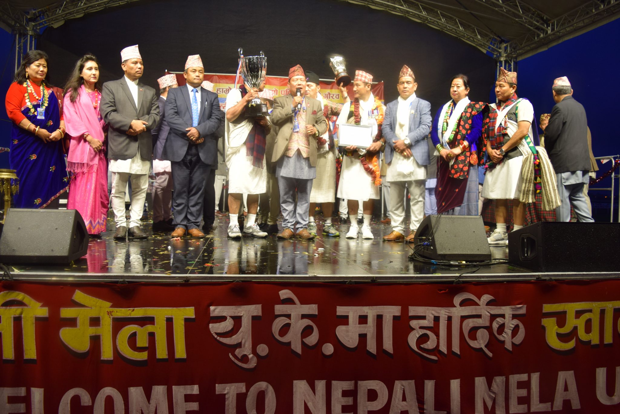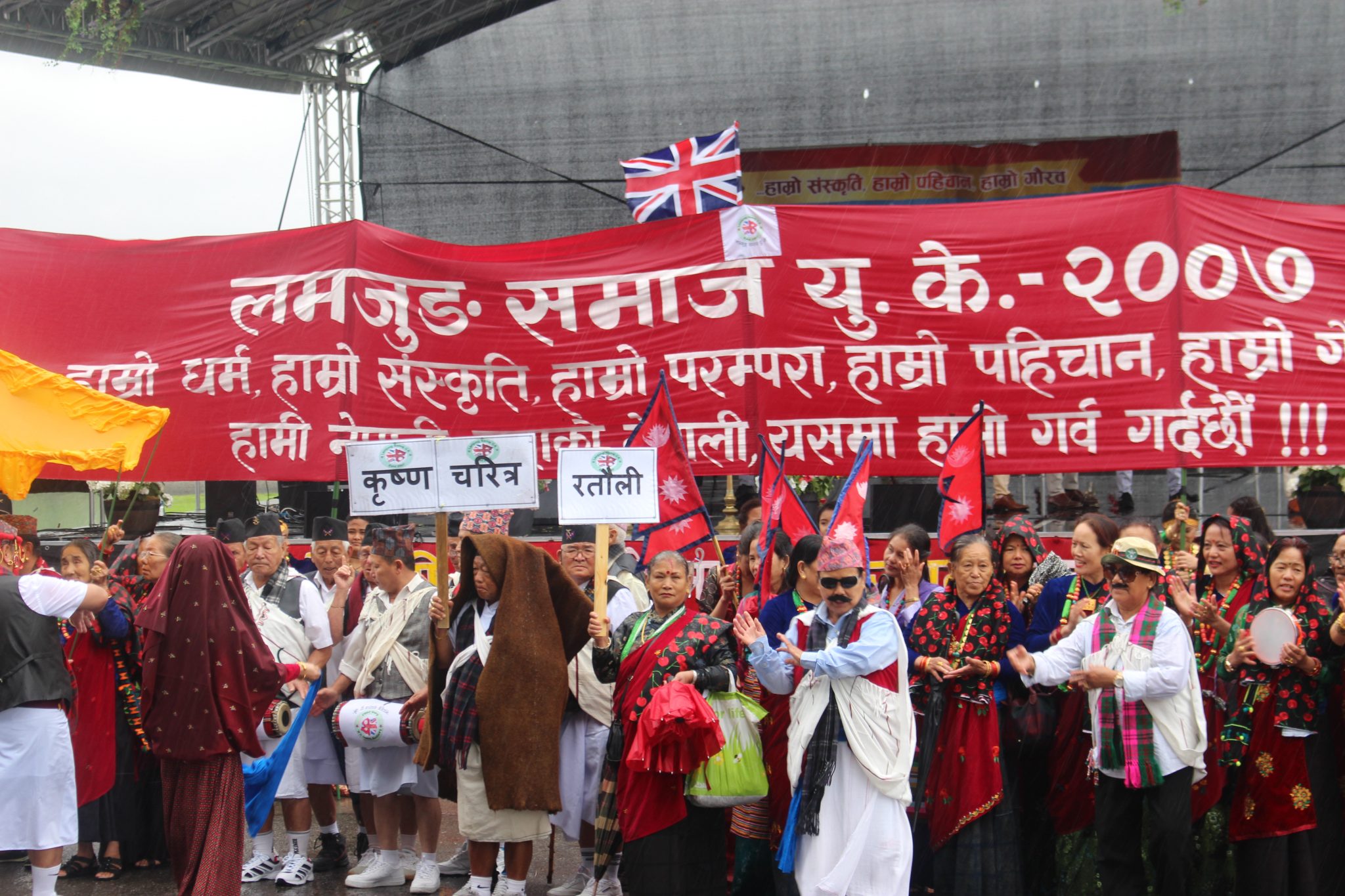 नेपालका विभिन्न भागका भेषभुषा तथा संस्कृति झल्काउने झाँकीहरु प्रदर्शन गर्दै लण्डनमा दशौं नेपाली मेला सम्पन्न भएको हो । मेला हेर्न पानीको प्रबाह नगरी छाता ओडेर बेलायतका विभिन्न क्षेत्रबाट हजारौं नेपालीहरु भेला भएका थिए ।