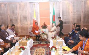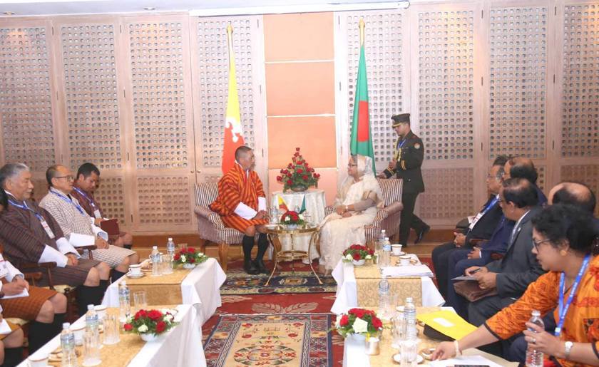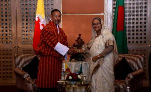 काठमाडौँ– बहुक्षेत्रीय प्राविधिक तथा आर्थिक सहयोगका लागि बङ्गालको खाडीको प्रयास (बिम्स्टेक)को चौथो शिखर सम्मेलनमा भाग लिन आएका बंगलादेशी प्रधानमन्त्री शेख हशिना र भुटानको अन्तरिम सरकारका प्रमुख सल्लाहकार एवं प्रधानन्यायाधीश ल्योन्पो छिरिङ वाङचुकबीच बिहिबार भेट भएको छ ।