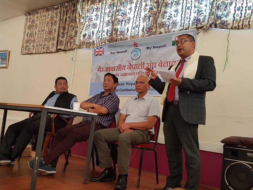 गैर आवासिय नेपाली संघ बेलायत राज्य समन्वय परिषद, वेल्स र वेल्स राज्यको कम्ब्रान सहरमा रहेको नेपाली सँस्था वेल्स गोर्खा कम्युनिटीको संयुक्त सहकार्यमा आयोजना गरिएको यस बिशेष अन्तरक्रिया कार्यक्रममा वेल्स गोर्खा कम्युनिटीका अध्यक्ष श्री सुबर्ण लिम्बुले यस्तो खालको कार्यक्रम आयोजना गरेकोमा राज्य समन्वय परिषद, वेल्सलाई धन्यवाद दिदै कार्यक्रम सफलताको शुभकामना दिएका थिए।