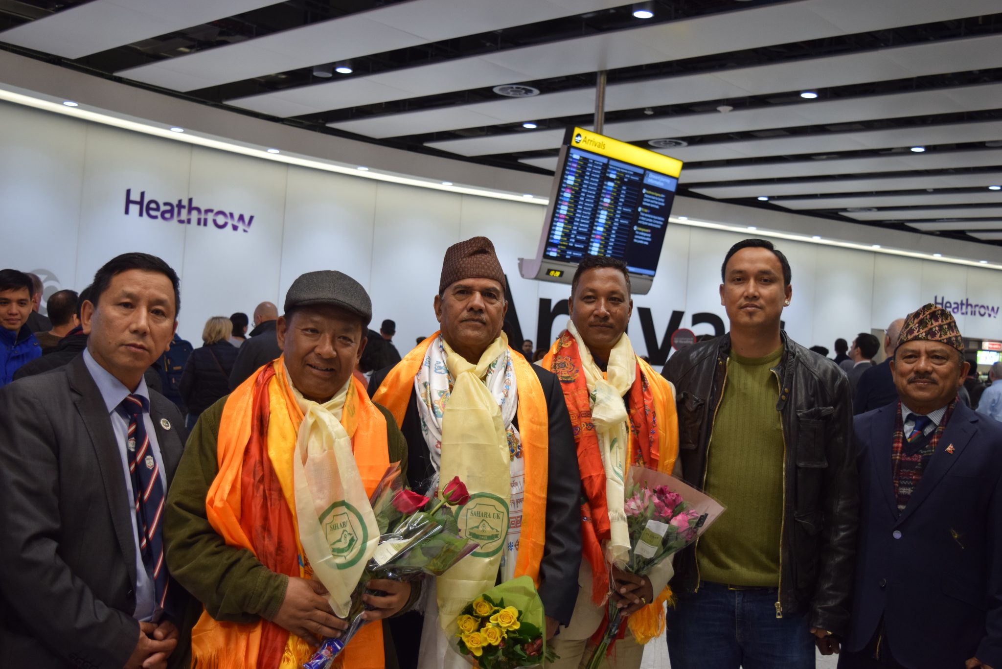 बेलायत भ्रमणमा आएका एन्फाका प्रतिनिधीहरु लण्डनस्थित हिथ्रो विमानस्थलमा उत्रिंदा यहांका नेपाली समुदायको तर्फबाट स्वागत गरिएको थियो । उनीहरुको स्वागतका लागि सहारा यूकेका अध्यक्ष मिनबहादुर गुरुङ, राष्ट्रिय तथा अन्तर्राष्ट्रिय खेलाडी संघ बेलायतका अध्यक्ष सिद्धार्थविक्रम क्षेत्री, साहरा यूके सल्लाहकार महेश गुरुङ, रामचन्द्र सुर्जे गुरुङ, बाचस्पति रेग्मी, कमल गुरुङ सहितका बेलायतस्थित नेपाली समुदायका अगुवाहरु हिथ्रो विमानस्थल पुगेका थिए ।