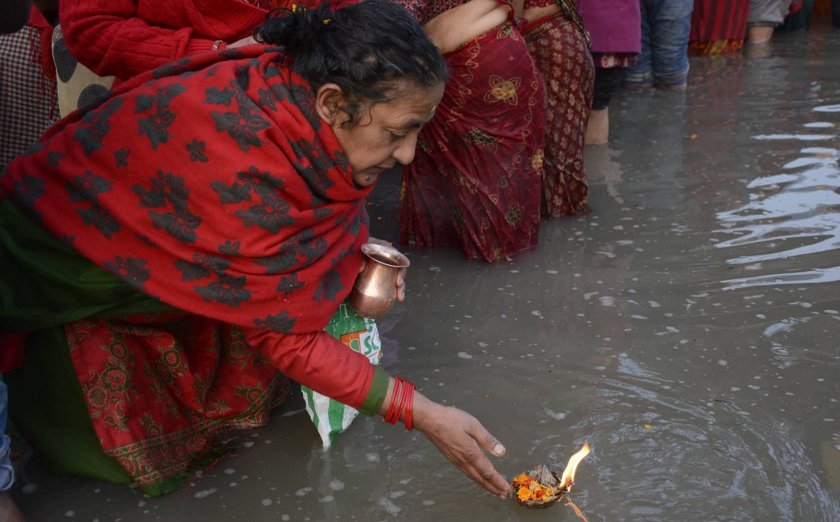 उदाउँदो सूर्यलाई अर्घ्य दिँदै छठको समापन, तस्बिरमा हेर्नुहाेस् गाैरीघाटकाे छठपूजा