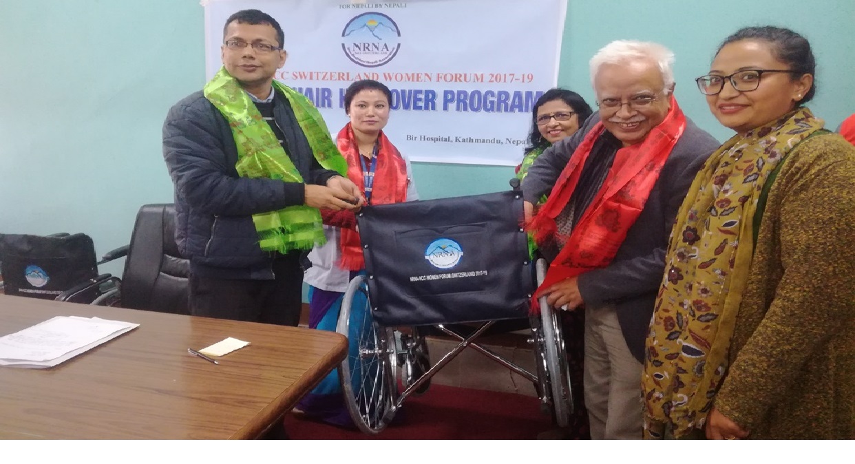 लन्डन –गैरआवासीय नेपाली संघ राष्ट्रिय समन्वय परिषद स्वीजरल्याण्ड, महिला फोरमले नेपालको पहिलो अस्पताल वीर अस्पतालमा सहयोग स्वरुप ह्विलचेयर हस्तान्तरण गरेको छ ।