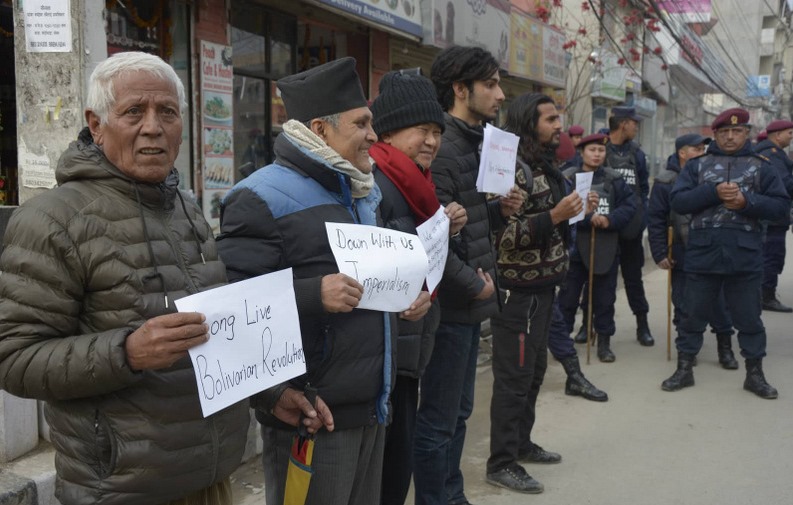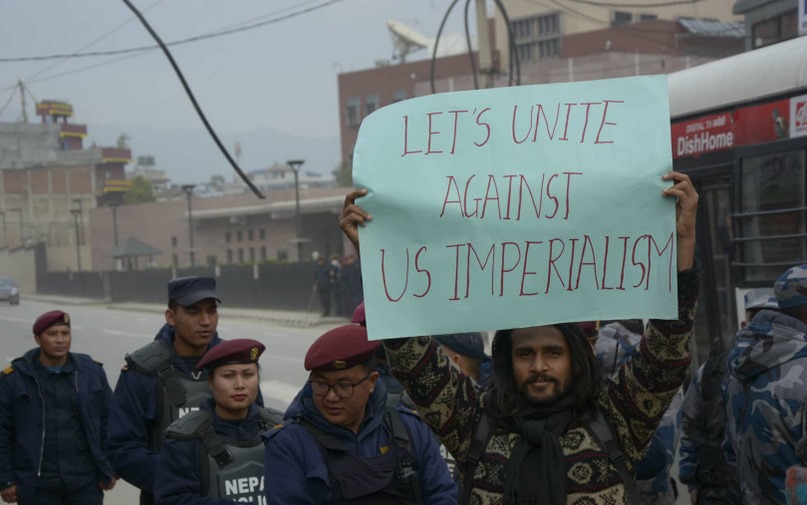 शनिबार काठमाडौंस्थित अमेरिकी दुतावास अघि ‘साम्राज्यवाद विरोधी’ नाम दिइएको एक समूहले भेनेजुयलाको निर्वाचित सरकारलाई अपदस्थ हुनेगरी अमेरिकाले हस्तक्षेप गरेको भन्दै विरोध प्रर्दशन गरेको हो ।