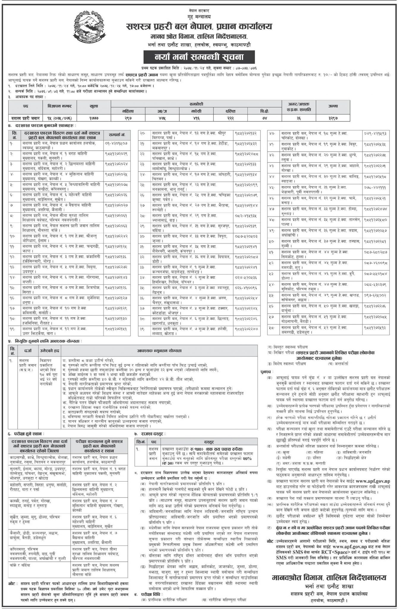 सशस्त्र प्रहरी बलको शुक्रबार प्रकाशित सूचनाअनुसार खुलातर्फबाट १७ सय ७७, महिला २९७, आदीबासी जनजाती ४७५, मधेसी ४१६, दलित २२२, पिछडिएको क्षेत्र ७४ र अमर प्रहरीबाट ३६ जना गरी कूल ३२ सय ९७ जना जवान माग गरिएको हो ।