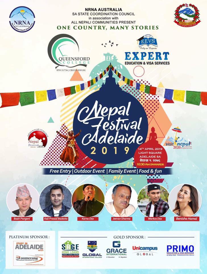 एडिलेड (अष्ट्रेलिया)- नयाँ वर्षको अवसर पारेर आगामी अप्रिल १४ (नेपाली नयाँ वर्ष २०७६ वैशाख १ गते) एडिलेडमा हुने नेपाल फेस्टिबलको प्रचार प्रसार तीब्र पारिएको छ ।गैरआवासीय नेपाली संघ साउथ अस्ट्रेलियाले एडिलेडस्थित लाइट स्क्वायरमा नेपाल फेस्टिबलको आयोजना गरेको हो । फेस्टिबलमा नेपाली आर्ट, कल्चर, फेशन सहित विभिन्न खानाका परिकारहरु रहने एडिलेड नेपाल फेस्टिभलका संयोजक अशोक केसीले जानकारी दिए ।