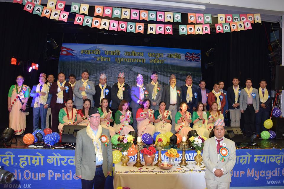 लण्डन । बेलायतमा म्याग्देलीहरुको साझा सँस्था म्याग्दी समाज अथवा म्याग्दी प्रबासी नेपाली सँघ (मोना) युकेले सधैका बर्षहरुमा झै यो बर्ष पनि नेपाली नयाँ बर्षको अवसर पारेर नयाँ बर्ष २०७६ को शुभ कामना साँझ बिबिध कार्यक्रम सहित पञ्चेबाजा बजाउदै धुमधामले मनाएका छन् ।