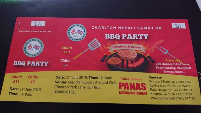 मध्यान्ह १२ देखि सांझ ८ बजेसम्म चल्ने कार्यक्रममा स्थानीय भलिबल समुहहरुबीच प्रतियोगिता समेत सञ्चालन गरिंदैछ ।भलिबल खेलका लागि समाजका पूर्व अध्यक्ष रोमनाथ पाण्डेले सहयोग स्पोन्सर गरेका छन् । त्यस्तै, कार्यक्रमको टिकट छपाईका लागि सुजन कटुवालले सहयोग गरेका छन् । समाजले प्रवेश शुल्क वयस्कलाई १३ र बालबालिकाका लागि ७ पाउन्ड तोकेको छ । साउन्ड सिस्टममा बेलायतमा चर्चित हेम विष्ट रहने छन् ।
