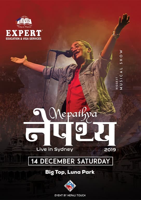 ”अस्ट्रेलिया लगायत विश्वका ११ वटा देशमा शैक्षिक एवम् माइग्रेसन परामर्शका निम्ति प्रख्या एक्सपर्ट एजुकेशन एन्ड भिसा सर्भिसेस र नेपाली समुदायलाई लक्षित गरी अस्ट्रेलियामै विगत ५ वर्षदेखि विभिन्न सामाजिक, सांस्कृतिक एवम् मनोरञ्जनात्मक कार्यक्रम गर्दै आएको समूह नेपाली टच बीच नेपथ्य लाइभ इन सिड्नी २०१९ नामक सांगीतिक कार्यक्रम आयोजना गर्ने निधो गरेको छ । कार्यक्रमको मुख्य प्रायोजन स्क्सपर्ट एजुकेशन एन्ड भिसा सर्भिसेसले गर्ने र आयोजकबाट कार्यक्रम प्रायोजन वापत प्राप्त गर्ने सेवा सुविधामा दुवै पक्ष राजी भएको हुँदा कार्यक्रमको औपचारिक नाम एक्सपर्ट एजुकेशन नेपत्थय लाइभ इन सिड्नी २०१९ तय गरिएको छ ।