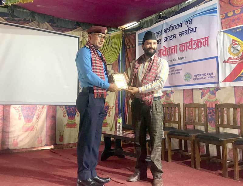 सूर्यविनायक नगरपालिका– ९ का वडाध्यक्ष उपेन्द्रराज केसीको प्रमुख आतिथ्यतामा सम्पन्न कार्यक्रममा महानगरीय प्रहरी वृत्त जगाति भक्तपुरका प्रहरी नायव उपरीक्षक चक्रराज जोशीले मानव बेचबिखन एवं लागू औषध तथा साइबर क्राइमसम्बन्धी प्रशिक्षण दिएका थिए । प्रहरी नायव उपरीक्षक जोशीले प्रशिक्षणका क्रममा पहिलो नम्बरमा लागू औषध, दोस्रोमा हातहतियार र तेस्रो नम्बरमा मानब बेचबिखन अपराधले विश्वलाई नै आतंकित बनाइरहेकोले यसलाई न्युनिकरण गर्न हामी सबै सचेत हुन आवश्यक रहेको बताए ।