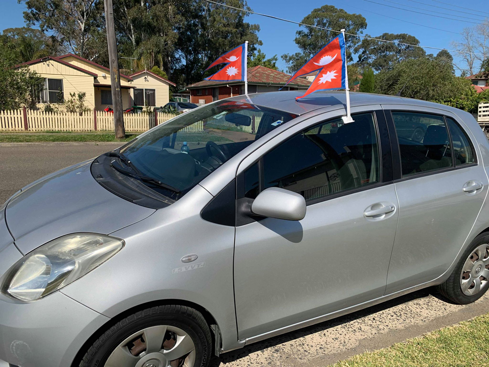 कारमा नेपाली झन्डा राखेर अस्ट्रेलियामा फराइने