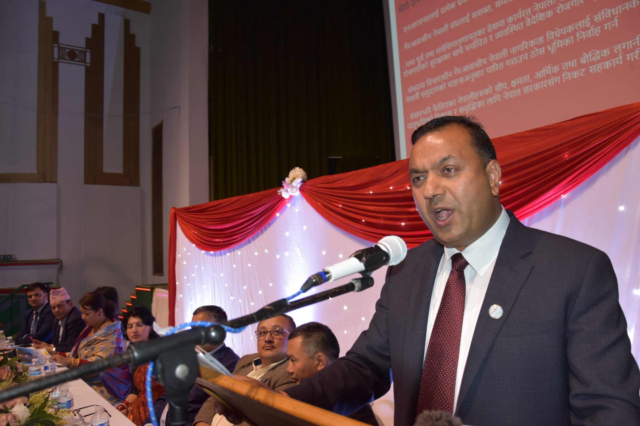 त्यसैगरी वैदेशिक रोजगारलाई मर्यादित र व्यवस्थित बनाएर देश निर्माणको आधार बनाउन आगामी दुई बर्षभित्र वैदेशिक रोजगार राहत कोषलाई कम्तिमा दोव्वर गर्ने, वैदेशिक रोजगारीका क्रममा समस्यामा परेका नेपाली दाजुभाई तथा दिदीबहिनीहरुको समस्या बुझ्न र समाधानको पहल गर्न एनआरएनए हटलाइनको व्यवस्था गर्ने, एनआरएन सीप विकास केन्द्रको स्थापना गर्ने, विदेशमा काम गरेर फर्किएका नेपालीहरुको सन्जाल बनाई उनीहरुसंग रहेको सीप, श्रोत र ज्ञान नेपालको विकासमा लगाउन पहल गर्ने समेत प्रतिवद्धता गरे।
