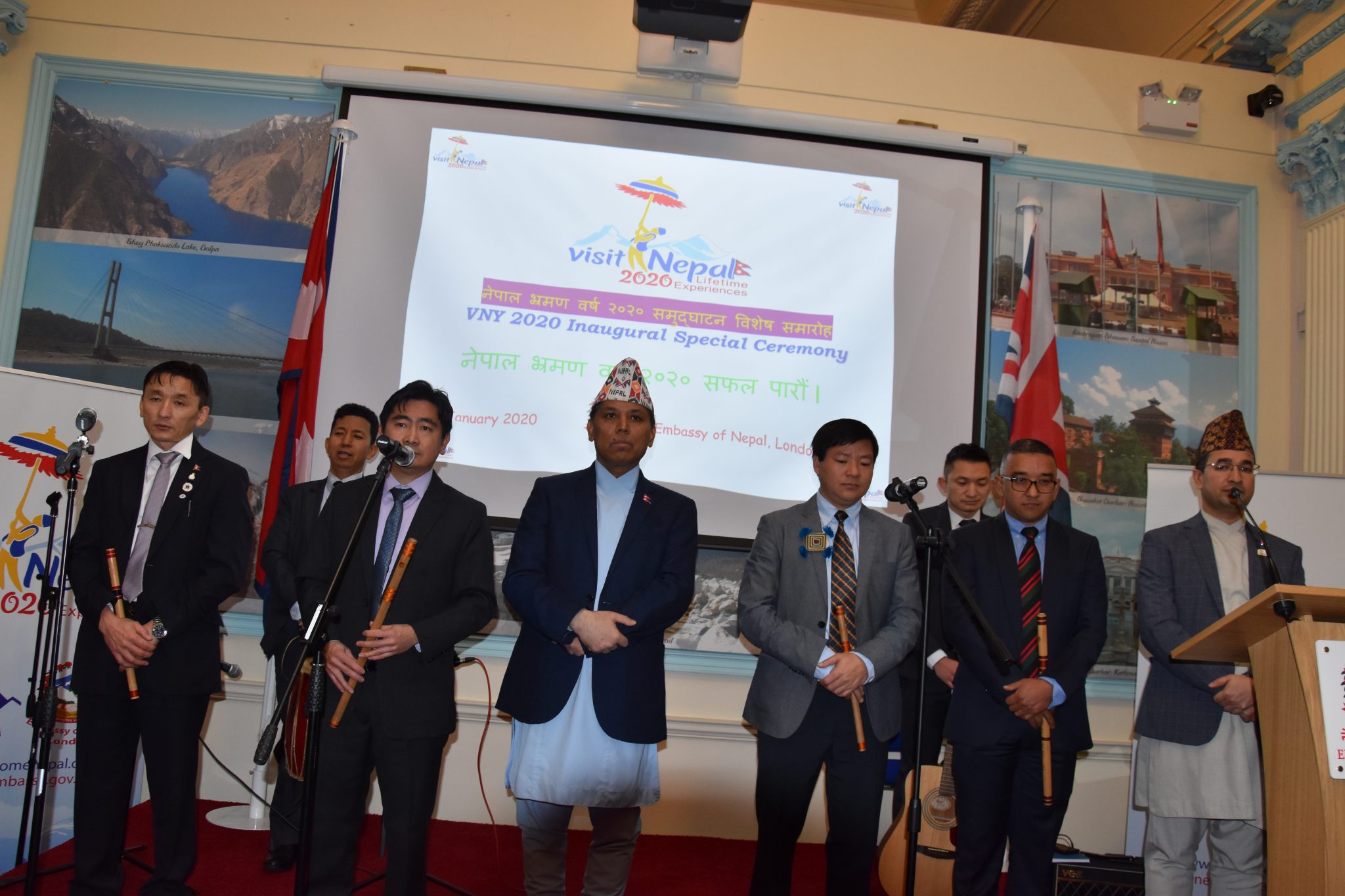 लन्डनस्थित नेपाली दूतावासमा एक समारोहकाबीच भिजिट नेपाल २०२० को औपचारिक शुभारम्भ