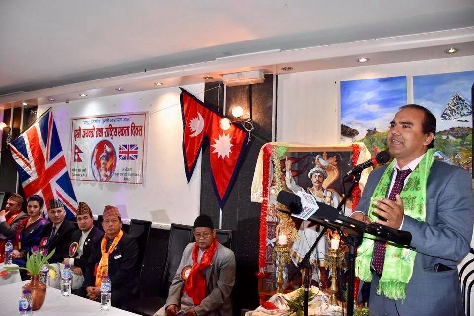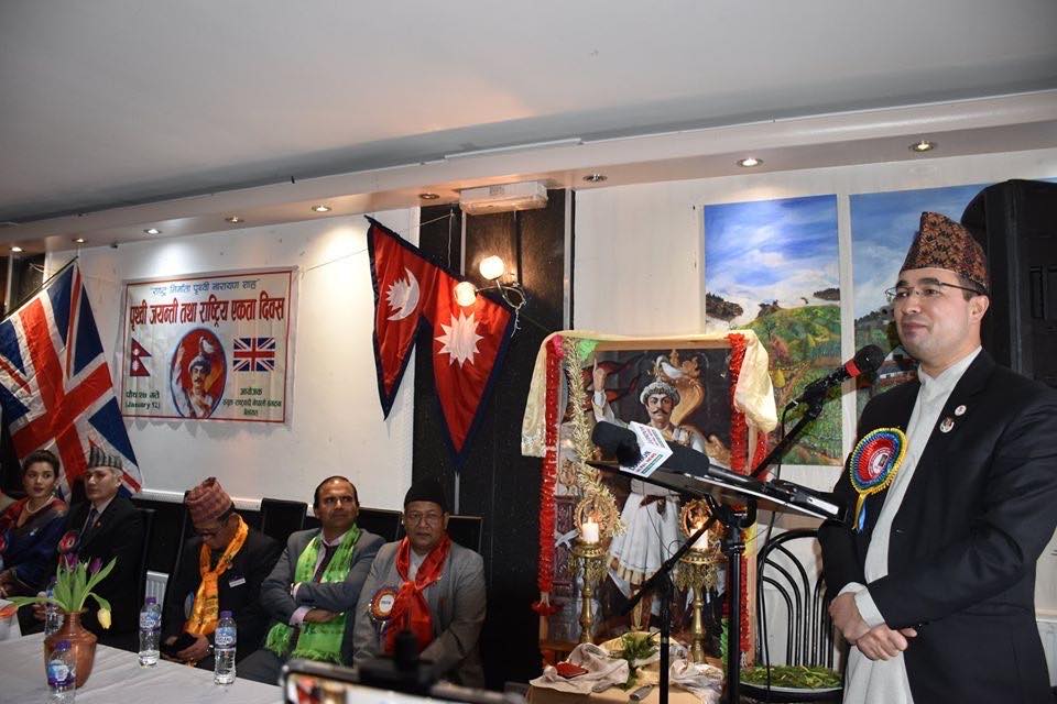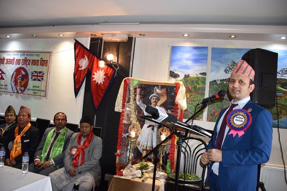 आयोजक संस्था संयुक्त राष्ट्रवादी नेपाली संगठन बेलायतका अध्यक्ष एवं कार्यक्रम संयोजक भरत रोका क्षेत्रीले पृथ्वीनारायण शाहको योगदानलाई राजसंस्थासंग मात्रै जोडेर हेर्न उपयुक्त नहुने विचार व्यक्त