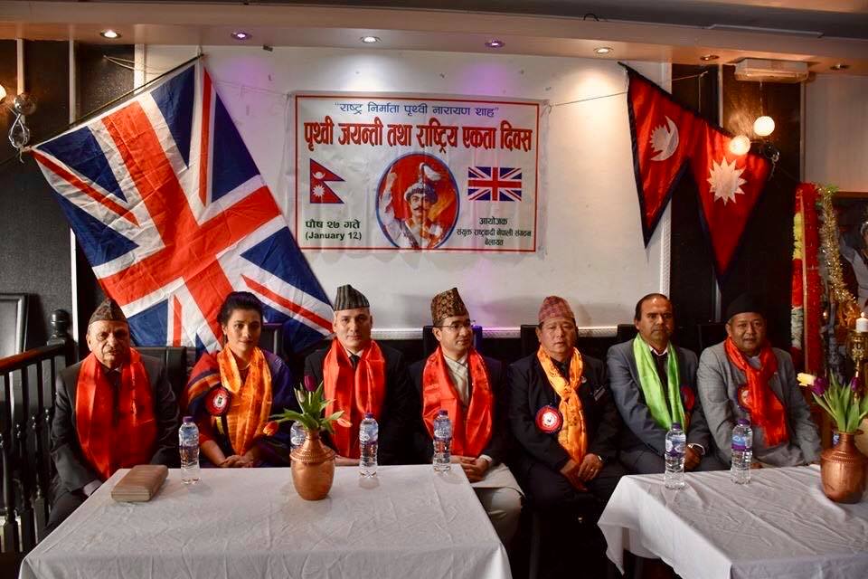 लन्डन । लन्डनमा २९८ औं पृथ्वी जयन्ती तथा राष्ट्रिय एकता दिवस मनाइएको छ । संयुक्त राष्ट्रवादी नेपाली संगठन बेलायतले आइतबार लन्डन सडबरीस्थित हिमालयन क्लबमा एक कार्यक्रमबीच पृथ्वी जयन्ती मनाएको हो ।