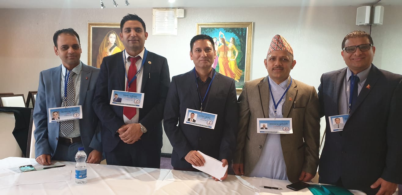यस्तै महासचिवमा रबिन्द्र शर्मा, सचिवमा लोकनाथ अधिकारी, कोषाध्यक्षमा मुकुन्दहरि खराल सहकोषाध्यक्षमा वीरेन्द्र (रेशम) खड्का निर्विरोध निर्वाचित भए । यस्तै सदस्यहरुमा सूर्य बस्नेत, कुमार भुजेल, यज्ञ डुम्रे, अर्जुन सापकोटा, लक्ष्मण भण्डारी, विजया (मीना) सापकोटा, पदम गोले, कृष्ण सापकोटा, रमेश पौडेल, उपेन्द्र सापकोटा र रवि गिरी रहेका छन् । एनआरएनए यूकेका पूर्वसचिव तारानाथ भण्डारी संयोजक र सहसंयोजकमा विष्णु चालिसेलगायत निर्वाचन कमिटीले निर्वाचित पदाधिकारीलाई सपथ गराएको थियो ।