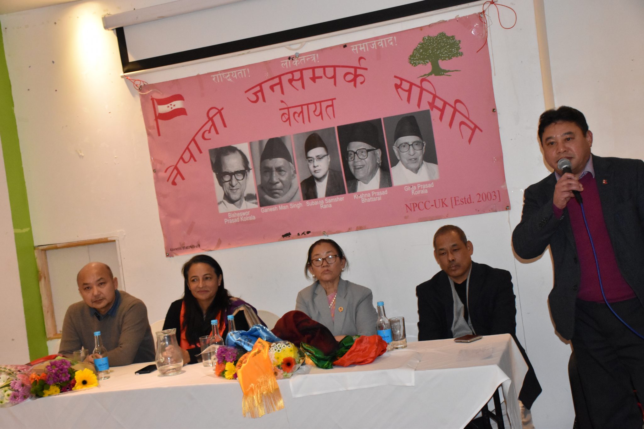 कार्यक्रममा जनसम्पर्क समिति यूकेका सभापति युवराज गुरुङले उपस्थित सबैलाई धन्यवाद दिदै नेपालको वर्तमान परिस्थितिबाट विदेशमा रहेका नेपालीहरु असाध्यै चिन्तित रहेको उल्लेख गर्दै कतिपय कमी कमजोरीका वावजुद निराश भइहाल्ने अवस्था भने नरहेको बताए ।‘जस्तोसुकै कठिन परिस्थितिलाई पनि सामना गर्दै कांग्रेसको नयाँ भविष्य दिन सक्नेमा हामी आशावादी छौं,’ गुरुङले भने,