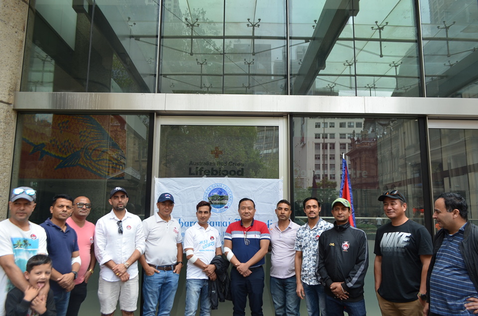बिगत लामो समयदेखि अष्ट्रेलियाभित्र नेपाली समुदायबीच विभिन्न सामाजिक कार्यमा हातेमालो गर्दै शनिबार आयोजित रक्तदान कार्यक्रममा सहभागीहरू मध्य १५ जनाले सस्थाका अध्यक्ष राजकुमार अधिकारी माधव गौतम, विष्णु पौडेल, राजेश केसी, हिउपती गुरुङ, सन्तोष आचार्य, कविता थापा, राम शर्मा, विष्णु पौडेल (हमिय), राजु ढकाल, विष्णुमाया न्यौपाने अधिकारी, श्रवण श्रेष्ठ, कुमार क्षेत्री र तक्दीर अधिकारी लगायतले रक्तदान गरेका थिए ।