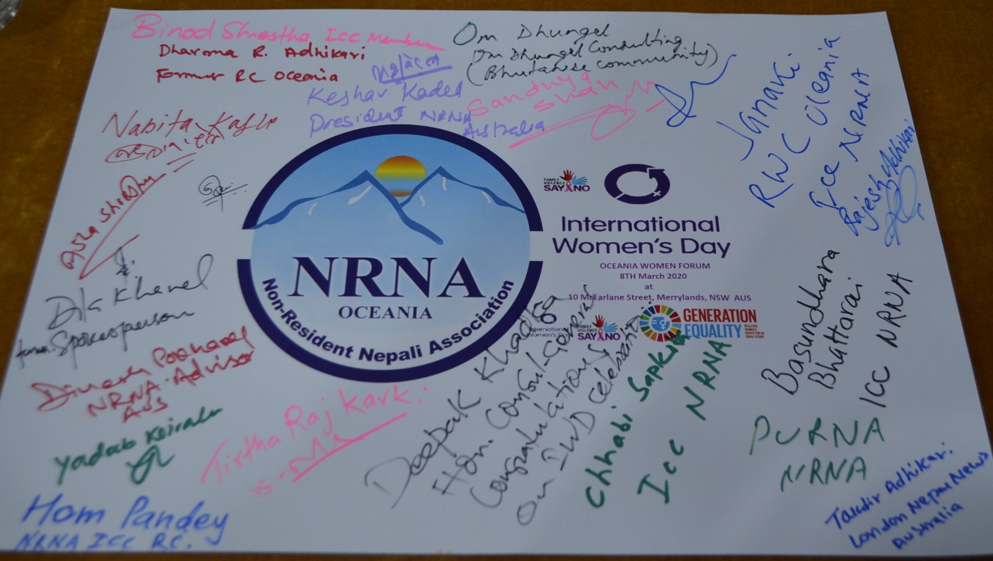 सिड्नी । गैरआवासीय नेपाली संघ (एनआरएनए) ओसियानाले अन्तर्राष्ट्रिय नारी दिवसका अवसरमा ‘आईओएम जेनेरेशन इक्वालिटी’ शीर्षकमा अन्तरक्रिया कार्यक्रम सम्पन्न ग-यो । कार्यक्रममा परिवारविरुद्ध हुने हिंसा अन्त्य तथा इज फर इक्वाल ब्यानरमा हस्ताक्षर गरियो ।