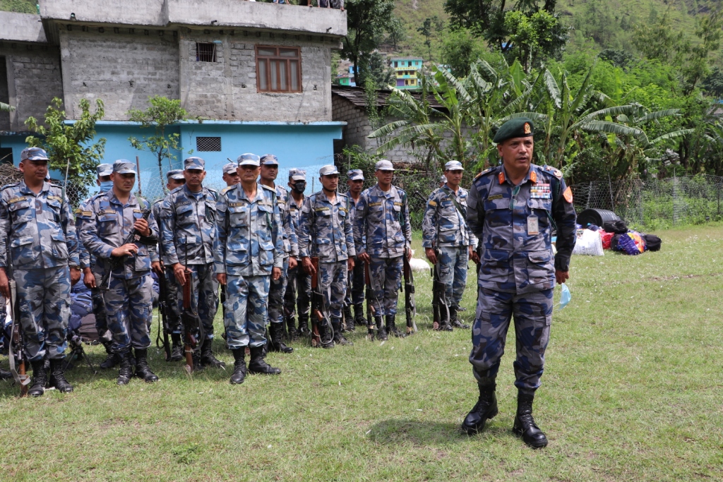 सशस्त्र प्रहरीलाई नेपाली सेनाको एनए–०५७ नंको हेलिकोप्टरमार्फत व्यासको गागा झारिएको छ । सशस्त्र प्रहरी बल नेपाल नं ५० गुल्म दार्चुलाबाट प्रहरी निरीक्षक लिली चन्दको नेतत्वमा २५ जनाको सशस्त्र प्रहरी छाङ्गरुमा खटाइएको एआइजी नारायणबाबु थापाले जानकारी दिनुभयो । उहाँले भन्नुभयो, “व्यासमा सशस्त्रको भवन निर्माणका लागि छिट्टै प्रक्रिया अघि बढ्छ । सरकारले बिओपी स्थापनाका लागि रु ११ करोड बजेट विनियोजन गरिसकेको छ”, उहाँले भन्नुभयो, “छिट्टै बोलपत्र आह्वान भएर स्थायी संरचना निर्माण गर्छौँ ।” अहिलेको परिस्थितिमा सशस्त्रको जिम्मेवारीअनुसार सीमारक्षाका लागि खटिएको छ । यो हाम्रो कार्ययोजना र सरकारको कार्यादेशानुसार सशस्त्र खटिएको हो, उहाँको भनाइ छ ।