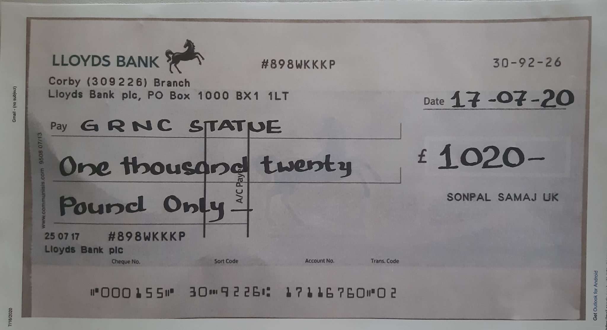 प्रथम भीसी थापाको शालिक निर्माणका लागि सोंपाल समाज यूकेले गर्‍यो १ हजार २० पाउण्डको चेक हस्तान्तरण