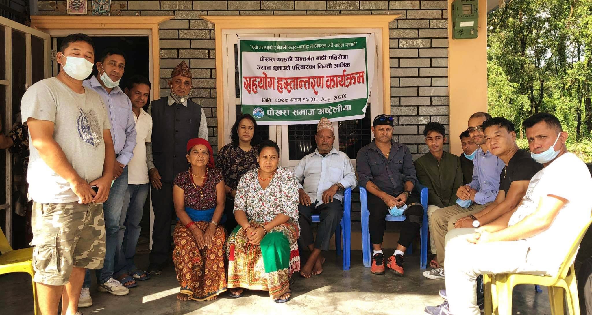 बाढी पहिरो पीडितको घाउमा मलम लगाउँदै पोखरा समाज अष्ट्रेलिया : १० परिवारलाइ १ लाख बढी सहयोग