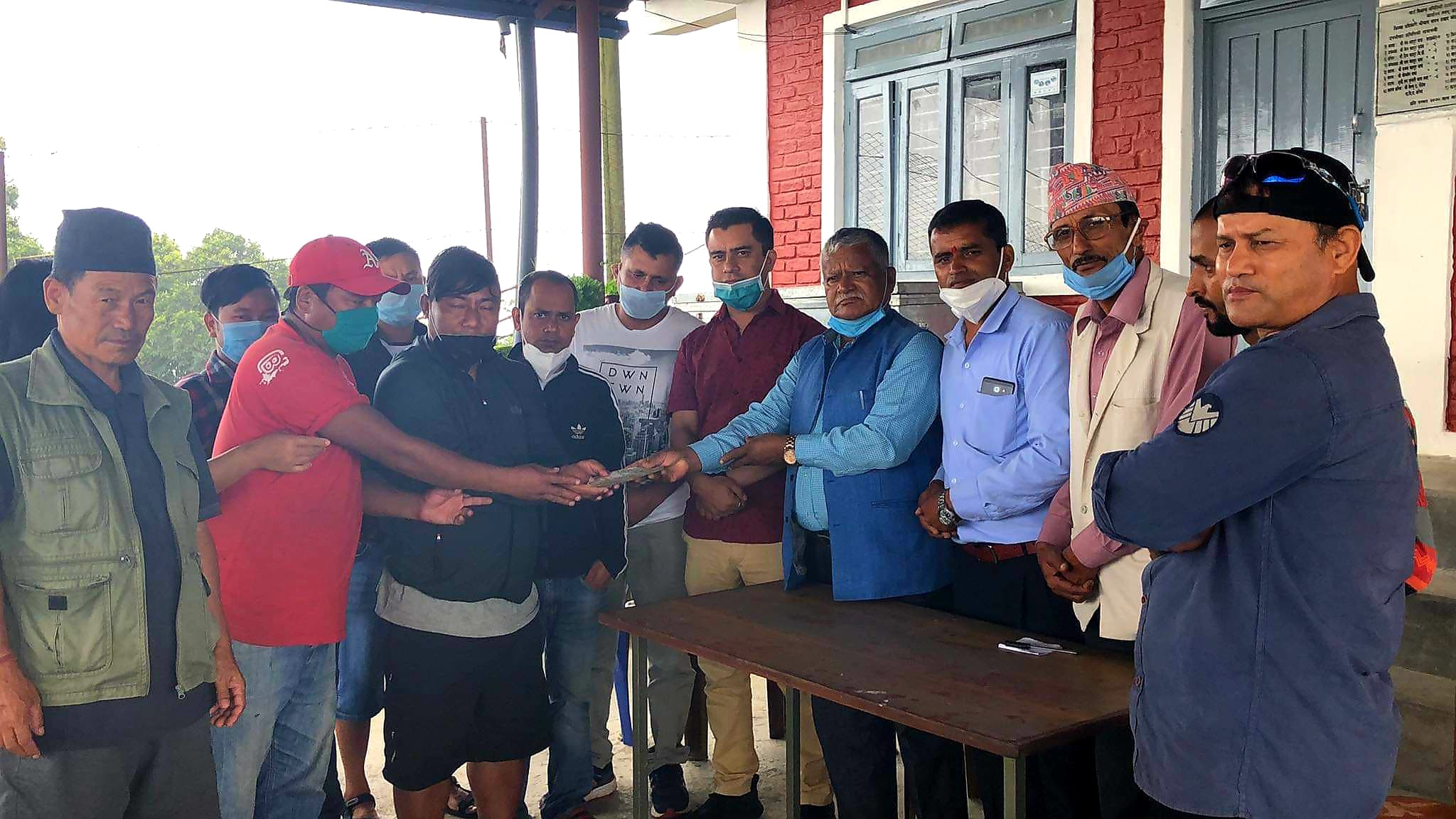 ने. का.  कास्की जिल्ला कार्य समितिका सभापति कृष्ण के.सी, नेपाल पत्रकार महासंघ गण्डकी प्रदेशका अध्यक्ष त्रिभुवन पौडेल, पोखरा लेखनाथ नगरपालिका वडा.१८ का अध्यक्ष रन बहादुर थापा, वडा.२६ का अध्यक्ष नारायण बराल र माछापुच्छ्रे गाँउपालिका ९ का अध्यक्ष कृष्ण दवाडी तथा समाजसेबिहरु लक्ष्मी पाण्डे, नवीन सिग्देल, महेन्द्र ढुँगना, राजेन्द्र मणि लामिछाने, तिर्थ प्रसाद अधिकारी, श्रीकृष्ण लामिछाने, बिष्णु क्षेत्री, शिव तिमिल्सिना, महेश खड्का लगायतको उपस्थितिमा पिडित परिवारलाई रकम हस्तान्तरण गरिएको हो ।