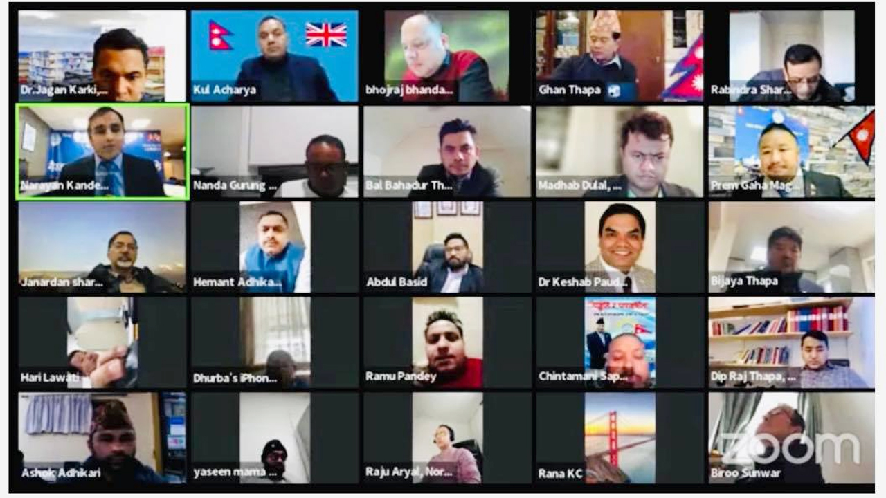नेपाल पत्रकार महासंघ, बेलायत शाखाको वार्षिक साधारणसभाका अवसरमा कार्यवहाक नेपाली राजदूत तेजबहादुर क्षेत्री, शाखा अध्यक्ष चिरन शर्मा, बीबीसी आवद्ध वरिष्ठ पत्रकार भगिरथ योगी र एनआरएनए यूके अध्यक्ष महेन्द्र कंडेलले
