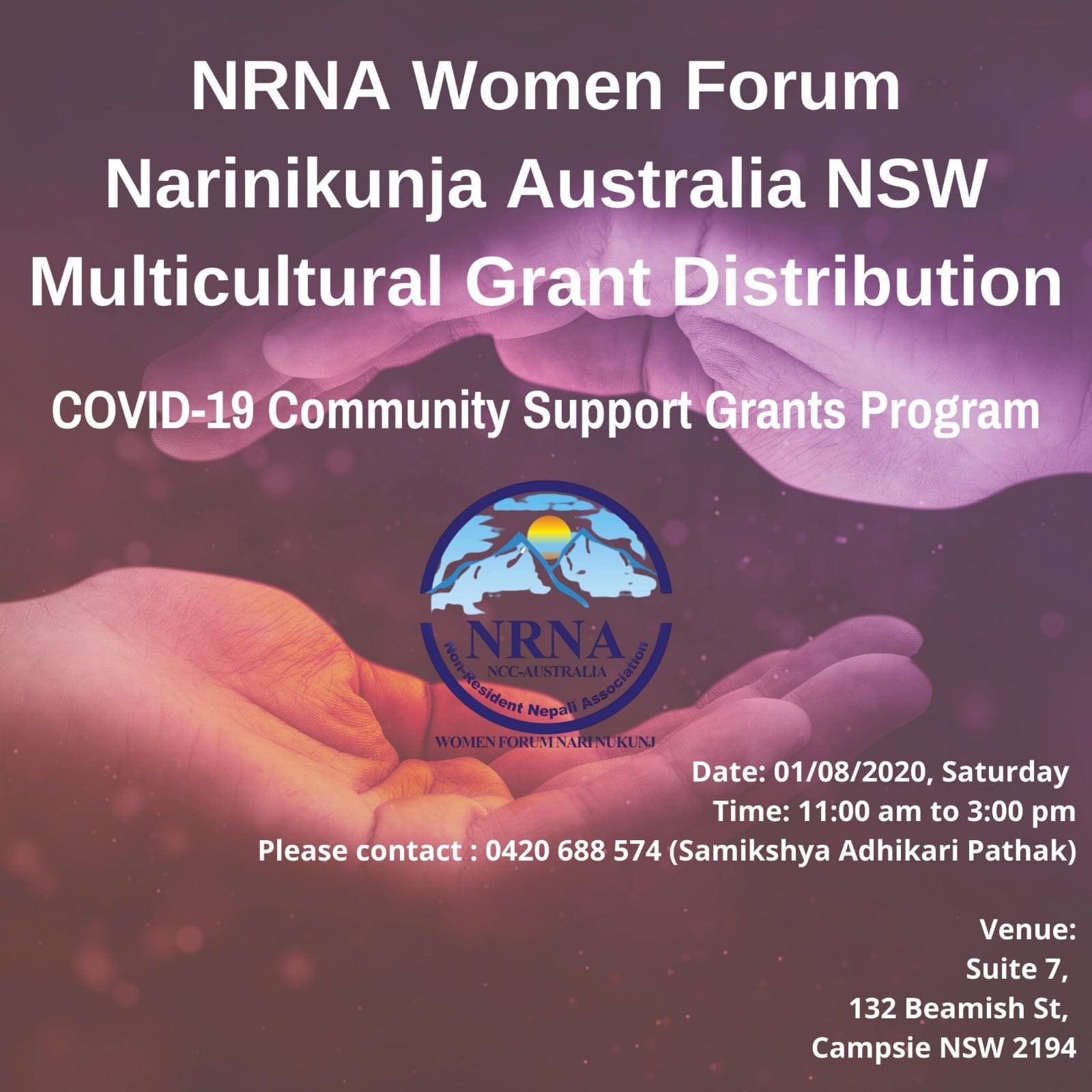 गैरआवासीय नेपाली संघ अन्तर्गतको उमन फोरम नारी निकुन्ज अष्ट्रेलियाले कोभिड १९ महामारीबाट प्रभावित भएका महिला विद्यार्थीहरुको लागी राहत उपलब्ध गराएको छ ।अष्ट्रेलियाको न्यु साउथ वेल्स राज्य सरकारको बहुसांस्कृतिक विभाग अन्तर्गत कोभिड १९ संकट सहयोग कार्यक्रम अन्तर्गत प्राप्त ५ हजार ५ सय डलर अनुदान ११० जना महिला विद्यार्थीहरुलाइ राहत वितरण गर्न लागिएको हो ।
