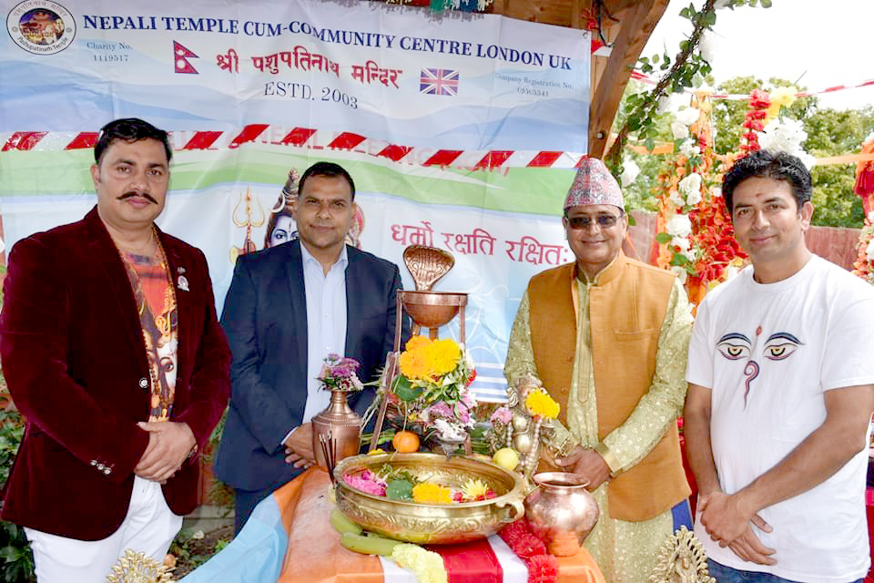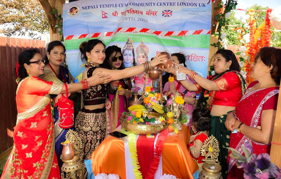 लन्डन । साउथ इष्ट लन्डनको प्लमस्टिडस्थित पशुपतिनाथ मन्दिरमा गत शुक्रबार तीज विशेष पूजाआजा कार्यक्रम गरी स्थानिय नेपाली महिला दिदीवहिनीहरुले मनाएका छन् ।कोभिड १९ को डर त्रासका बीच पशुपतिनाथ मन्दिरमा सामाजिक दुरी कायम गर्दै नेपाली महिलाहरुको महान चाड हरितालिका तीज मनाइएको हो ।