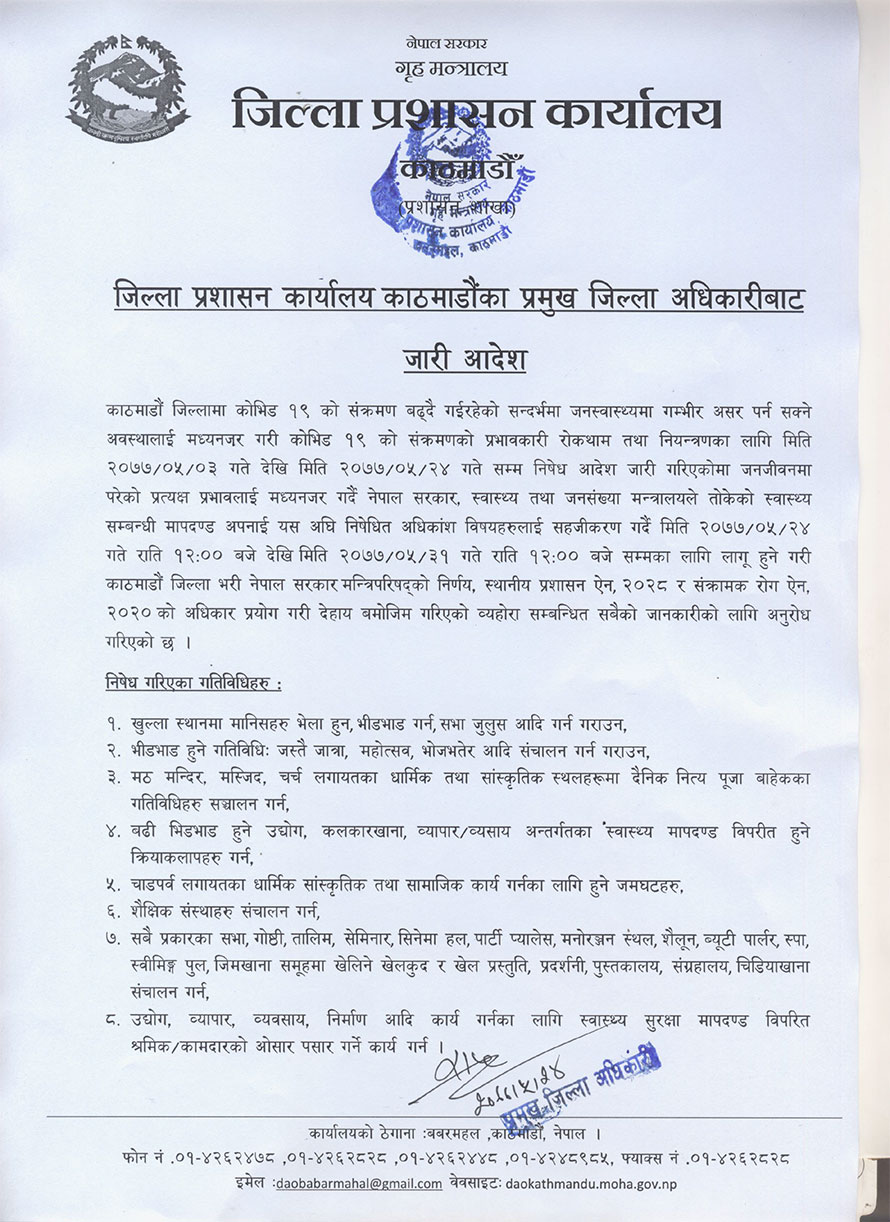 अब के गर्न पाइने के गर्न नपाइने ? हेर्नुहोस प्रशासनले जारी गरेको सूचना ।