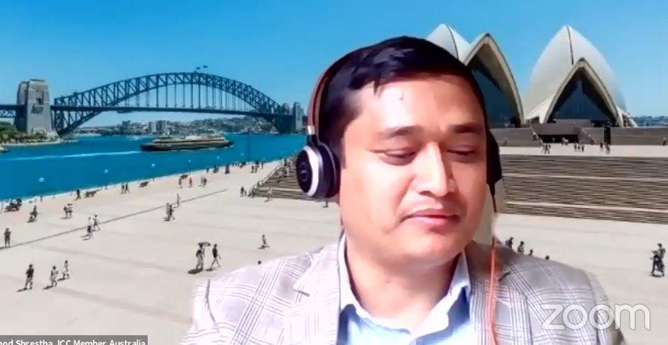 नेपालमा लगानीको क्षेत्रहरु ठुलो भएको भन्दै भन्दै सूचना तथा प्रविधि, कृषि, को क्षेत्रलाइ प्राथमिकता दिन सकिने बताए । त्यस्तै कृषि मन्त्रालयका सहसचिब डा. हरि केसीले कोराना भाइरसले खाद्य सुरक्षामा पारेको असर, नेपाल राष्ट्र बैंकका कार्यकारी निर्देशक डा. प्रकाश श्रेष्ठले कोरोनाभाइरस महामारीले नेपालको अर्थतन्त्रमा पारेको प्रभाव र यसपछिको कार्यभार, मेघा बैंकका अध्यक्ष भोज बहादुर शाहले कोरोना महामारीको कारण बैंक क्षेत्रमा पारेको प्रभाव, न्युजिल्याण्डका अनुसन्धान वैज्ञानिक डा. कमल अधिकारीले कोभिड १९ महामारी पछिको अर्थतन्त्रको पुनरोत्थानका उपायहरु, अर्थशास्त्री डा. कृष्ण हमालले कोभिडले अष्ट्रेलियाको अर्थतन्त्रमा पारेको प्रभाव र यहाँ स्थित नेपालीमा परेको असरको बारेमा स्लाइडहरु प्रस्तुत गरे । डा. राजु अधिकारीको संयोजकत्वमा अवैतनिक दूत द्धोय दिपक खड्का, चन्द्र योञ्जन, दुर्गा आचार्य, होममुर्ति पन्त, बसुन्धारा भट्टराइ, धर्मराज अधिकारी, दिनेश राज जोशी र गणेश केसी सदस्य रहने गरी प्यानलिस्टको भुमिका निभाएका थिए । त्यसैगरी हेल्थ अर्थात स्वास्थ्य क्षेत्रसँग सम्बन्धमा रहेर त्रिभुवन विश्वविद्यालयका प्रयोग विज्ञान तथा अनुसन्धान केन्द्रका निर्देशक डा. रामेश्वर अधिकारीले ब्यक्तिगत सुरक्षाका सामग्री, अल्फा एग्रो प्रालिका प्रमुख वैज्ञानिक अधिकारी कविता कंडेल र समिरण सुवेदीले कोरोना महामारीको औषधी, अष्ट्रेलियाको अल्मडाका अर्थाेपेडिक सर्जन डा. कुश श्रेष्ठले एनआरएनएको स्वास्थ्य समितिले कोभिड १९ महामारीमा लिएको पहलकदमी, सेन्ट्र वेस्ट क्यान्सर केयर, अरेन्ज अस्पतालका निर्देशक डा. डिल्ली बञ्जाडेले कोरोना महामारीको समयमा स्वास्थ्य क्षेत्रमा लिन सकिने निर्णयहरु, नेपाल महिला कमिशनका सिनियर केस म्यानेजर विमला खड्काले्् कोभिड महामारी पछिको महिला स्वास्थ्य तथा कल्याण ब्यबस्थापन, मानसिक स्वास्थ्य मुद्धाका जानकारी जनस्वास्थ्य विद भरत नेपालले अष्ट्रेलियाका नेपाली समुदायमा हालको समयमा मानसिक स्वास्थ्य सम्बन्धी ज्ञान मुल्याङ्कनको बारेमा प्रस्तुतीकरण गरेका थिए ।