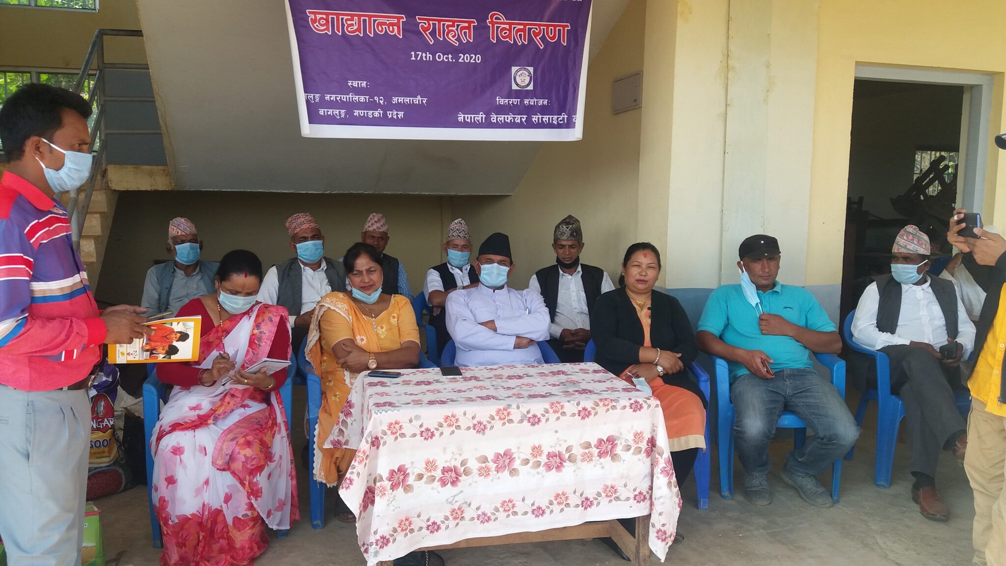 बाग्लुङ नगरपालिकाका प्रमुख जनकराज पौडेलको विशेष उपस्थितीमा कोरोनाभाइरस महामारी नियन्त्रण गर्न लगाइएको महामारीको कारण समस्यामा परेका ती विपन्न परिवारहरुलाई ३० केजी चामल, दाल, तेल, नुन र साबुन प्रदान गरिएको हो । बाग्लुङ्गमा राहत वितरण कार्यक्रम र यूकेबाट जुम मार्फत बैठक सँगसँगै गरी हस्तान्तरण कार्यक्रम गरिएको संस्थाले जनाएको छ ।