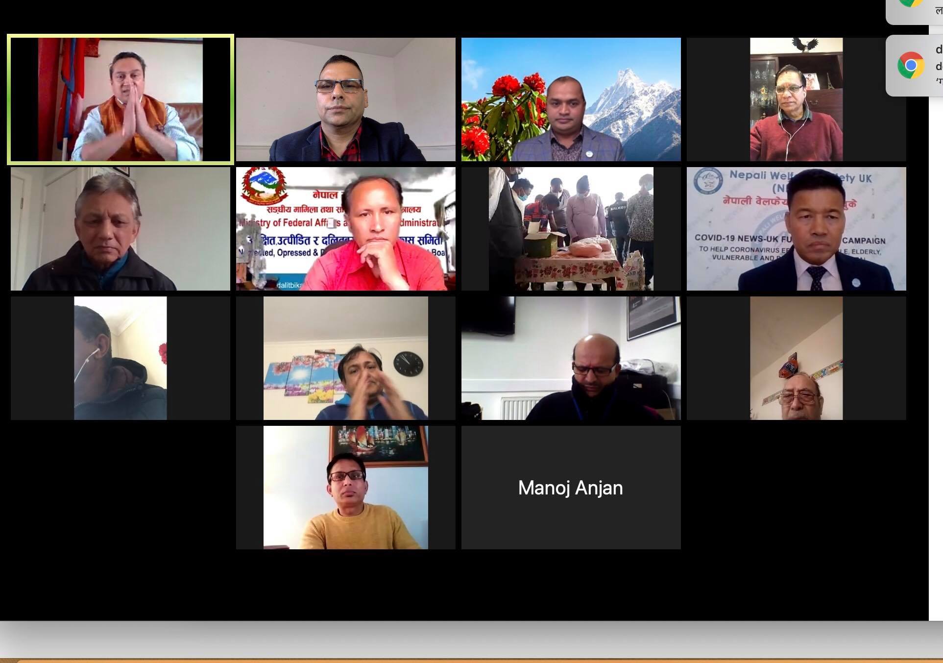 भर्चुअल जुममार्फत संचालित उक्त कार्यक्रममा एनआरएनए यूकेका सचिब एबम रोयल बरो अफ ग्रीनवीच नेप्लिज सोसाईटी यूकेका उपाध्यक्ष जित रानाभाटले कार्यक्रम सञ्चालन गर्दै कोरोना संकट यता बिगत केहि महिना देखि निरन्तर यस्ता भर्चुअल कार्यक्रमहरुको संचालन र आर्थिक सहयोग समेत गरेको बताउदै आगामी दिनमा समेत हरेक सामाजिक कार्यमा आफ्नो सक्दो सहयोग हुने बताए ।