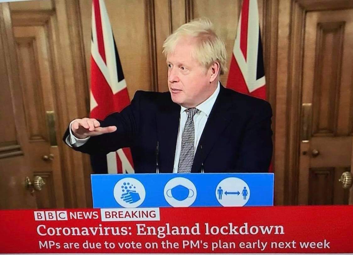 शनिबार बेलुका एक पत्रकार सम्मेलनलाई सम्बोधन गर्दै प्रधानमन्त्री बोरिस जोन्सनले क्रिसमस अघि खुकुलो गर्ने गरि दोश्रो लकडाउन गरिने घोषणा गरे।