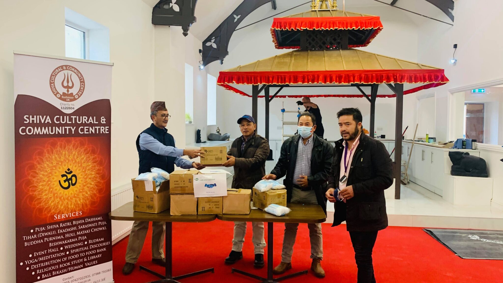 आइतवार मात्रै अल्डरशटको शिव कल्चरल सेन्टर र गुम्बामा पुगी कोरोनाभाइरसबाट बच्नको निम्ती अपनाइने सुरक्षा कवच भित्र पर्ने मास्क र सेनिटाइजर हस्तान्तरण गरिएको छ । कार्यक्रममा शिव कल्चरल कम्युनिटी सेन्टरका अध्यक्ष भिम बानियाँ एबम महासचिव बिक्रम भट्टराईले क्यान युकेलाई धन्यबाद ज्ञापन गरे।स्याङ्जा समाजको अगुवाईमा सम्पन्न भएको उक्त कार्यक्रमको संयोजन एलबिजेड गुरुङले गरेका थिए ।