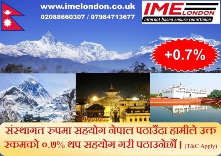 लण्डन । बेलायतबाट सञ्चालित रेमिट्यान्स कम्पनी आईएमई लण्डनले वित्तिय क्षेत्रबाट समाजसेवा गर्ने नया आयामको सुरुवात गरेको छ।