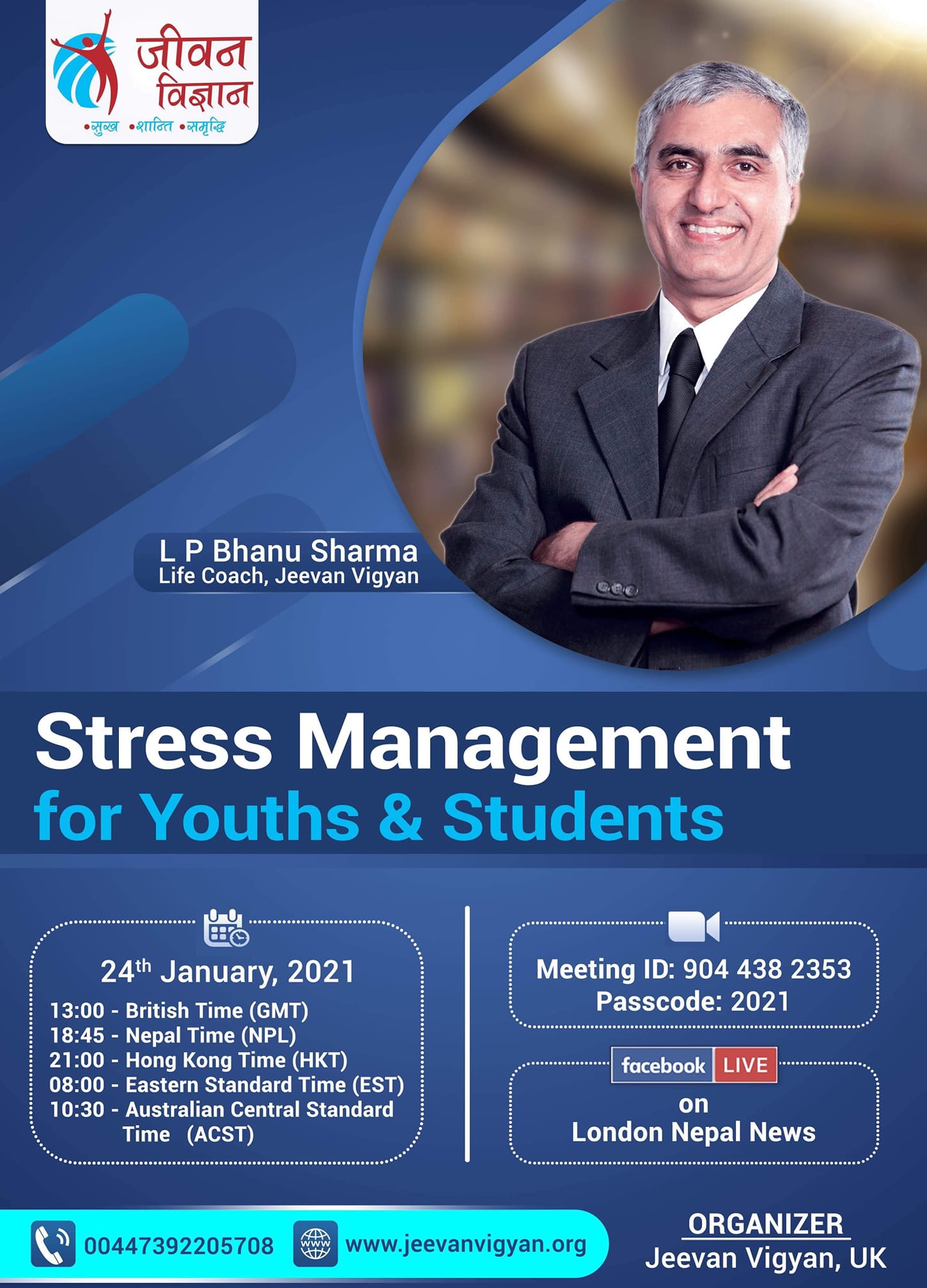 कार्यक्रममा जीवन विज्ञान नेपालका श्रदेय गुरु एलपी भानु शर्माले आफ्ना वैज्ञानिक र आध्यात्मिक ज्ञान मार्फत तनावका स्रोत र व्यवस्थापनका उपायहरु सुझाउने कार्यक्रम रहेको छ । जीवन विज्ञान यूकेले आयोजना गरेको उक्त कार्यक्रममा सबैलाई सहयोग गर्न आग्रह गर्दै अहिलेको चुनौतिपूर्ण अवस्थामा यो तालिम महत्वपूर्ण हुने बताईएको छ ।