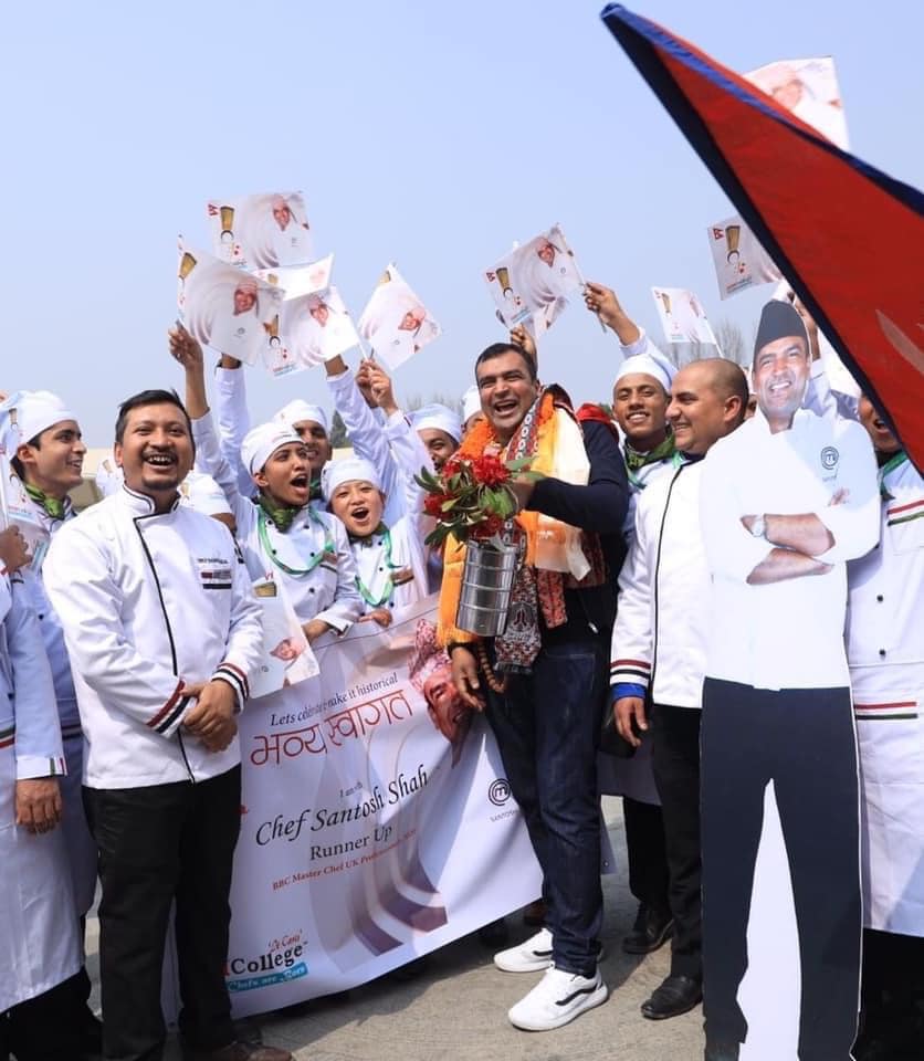 ‘मास्टर सेफ युके’मा उपविजेता ‘फस्ट रनरअप’ भएका साह आज नेपाल आएका छन् । मध्याह्न काठमाडौँ ओर्लिएका शाहलाई विमानस्थलमा भव्य स्वागत गरियो । नेपालका सेफ तथा पर्यटन व्यवसायीले उनलाई स्वागत गरेका हुन् । नेपालमा लामो समयदेखि काम गरेका ‘लेजेन्ड’ सेफ तथा युवा सेफको उपस्थितिले माहोल निकै भावुक बनेको थियो ।