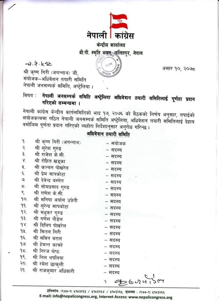 सिड्नी । नेपाली जनसम्पर्क समिति अष्ट्रेलियाको अधिवेशन तयारी समितीलाई केन्द्रीय कार्यसमितिले पूर्णता दिएको छ।