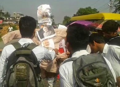 नेपालमा गएको बिनासकारी महाभुकम्प पश्चात उद्धारमा आएका भारतीय शैनिकले नेपालमा ज्यादती गरेको भन्दै सुनसरीको इटहरी स्थित जनता क्याम्पसका बिद्यार्थिहरुले मंगलवार दिउसो भारतीय प्रधानमन्त्री नरेन्द्र मोदीको पुत्ला जलाएका छन ।