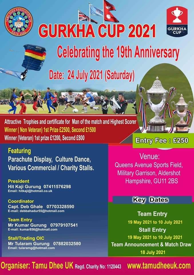 लन्डन । बेलायतको नेपाली समुदायमा सबैभन्दा वृहत इभेन्ट मानिने गोर्खा कपको तयारी व्यापक भइरहेको आयोजक तमुधिं यूकेले जनाएको छ ।