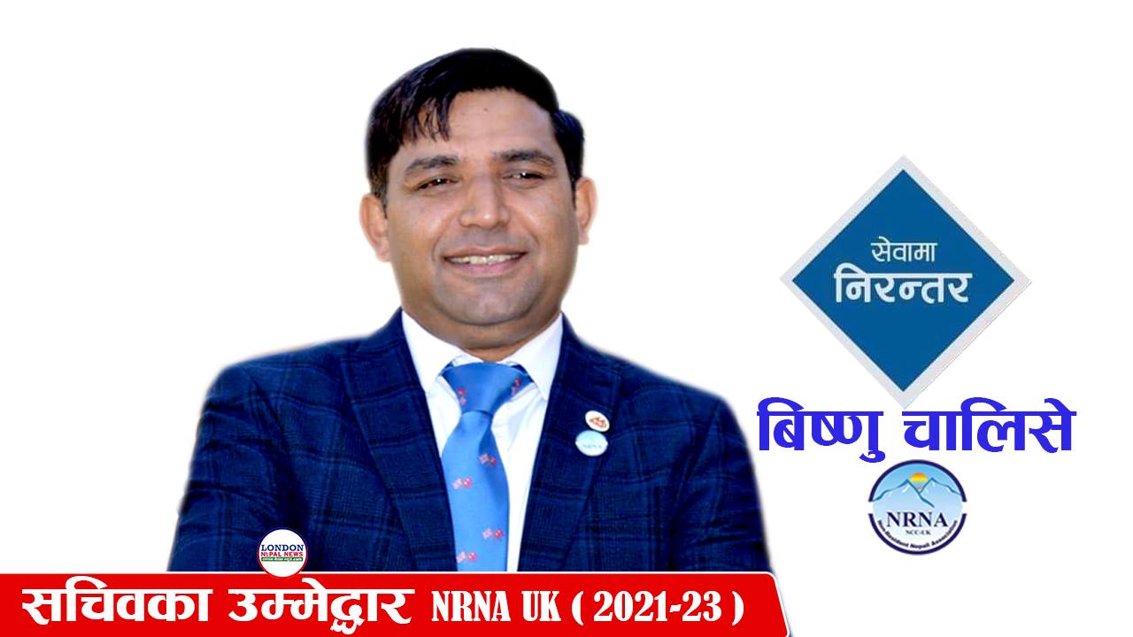 लण्डन । गैर–आवासीय नेपाली संघ (एनआरएनए)यूकेको जुलाई ३१ मा सम्पन्न हुन लागेको निर्वाचनमा मिडल्याण्डका नेपाली व्यवसायी विष्णु चालिसेले उम्मेद्वारी दर्ता गराएर चुनावी दौडाहा तिव्र पारेका छन् । सभ्य, भद्र र शालिनताले बेलायतको नेपाली समुदायको मनमुटु जितेर प्रशंसाको मोहरी कमाएका उनले सचिव पदमा अबको दुई बर्षीय यात्रा सुनिश्चित भइसकेको दाबी गरे ।